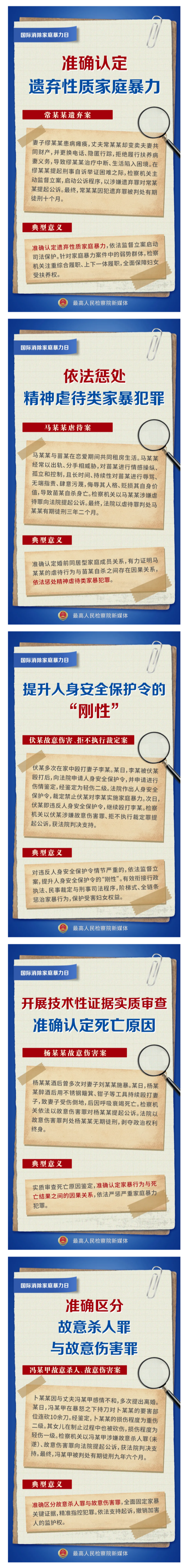 11月25日,在“国际消除家庭暴力日”来临之际,最高检以“依法惩治家庭暴力犯罪 促进家庭和谐社会稳定”为主题召开新闻发布会,发布5件检察机关依法惩治家庭暴力犯罪典型案例。准确认定遗弃性质家庭暴力、依法惩处精神虐待类家暴犯罪、准确区分故意杀人罪与故意伤害罪、提升人身安全保护令的“刚性”……一组海报,带您了解案件详情!