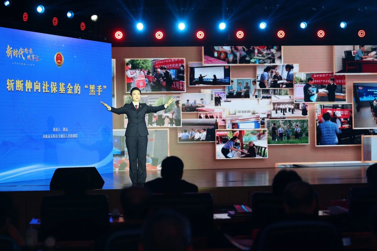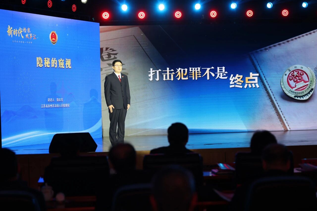荣获“十佳检察办案故事”的检察机关代表在现场讲述。